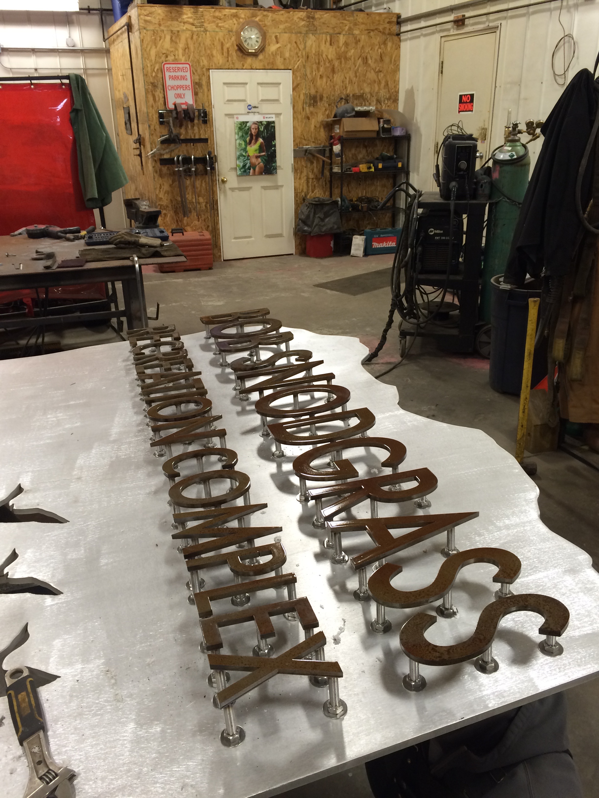 The Bob Snodgrass arena signage done for the Town of High River 2015-16. Mixing Corten, Aluminum, Stainless and mild Steel to creaet one of a kind designs!